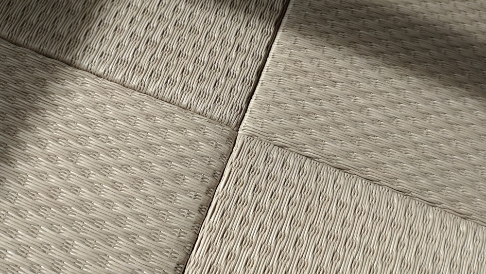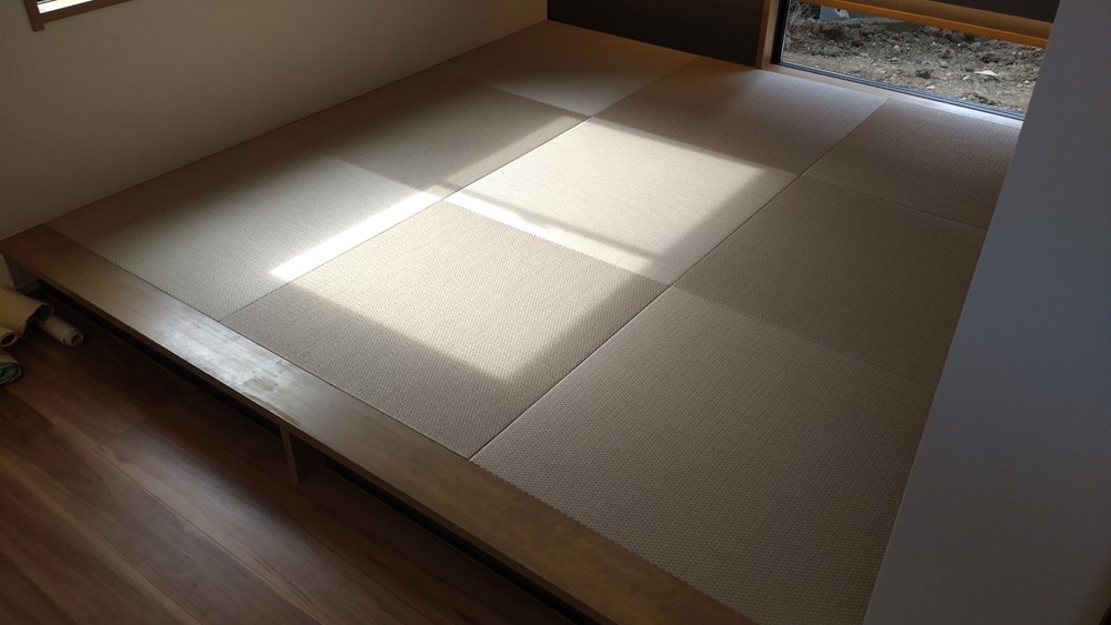 ダイケン和紙表「小波14(灰桜色)」を使用して、琉球畳(縁無畳)半畳9枚市松敷きで納品致しました。