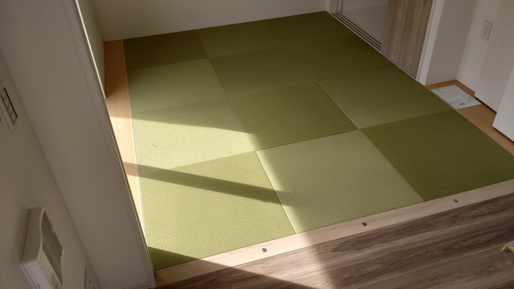 ダイケン和紙表「綾波01(銀白色)」を使用して、琉球畳(縁無畳)半畳12枚を市松敷きで納品致しました。