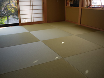 上記の写真は、同じダイケン和紙畳表「清流(銀白色)」で作った縁無畳のものです。