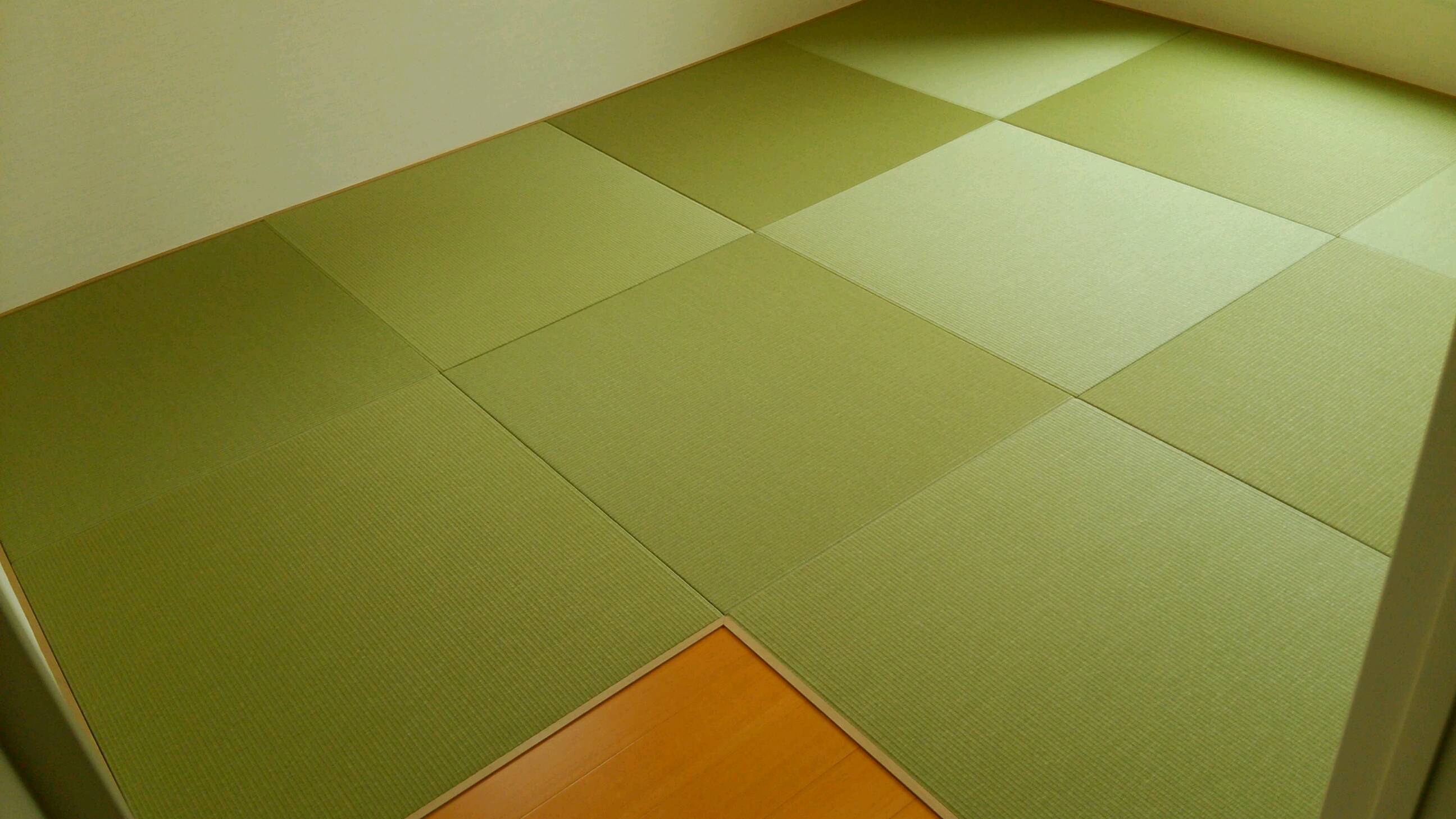ダイケン和紙表「清流(銀白色)」を使っての縁無畳(琉球畳)を部屋の大きさに合わせて、ピッタリ作成しました。