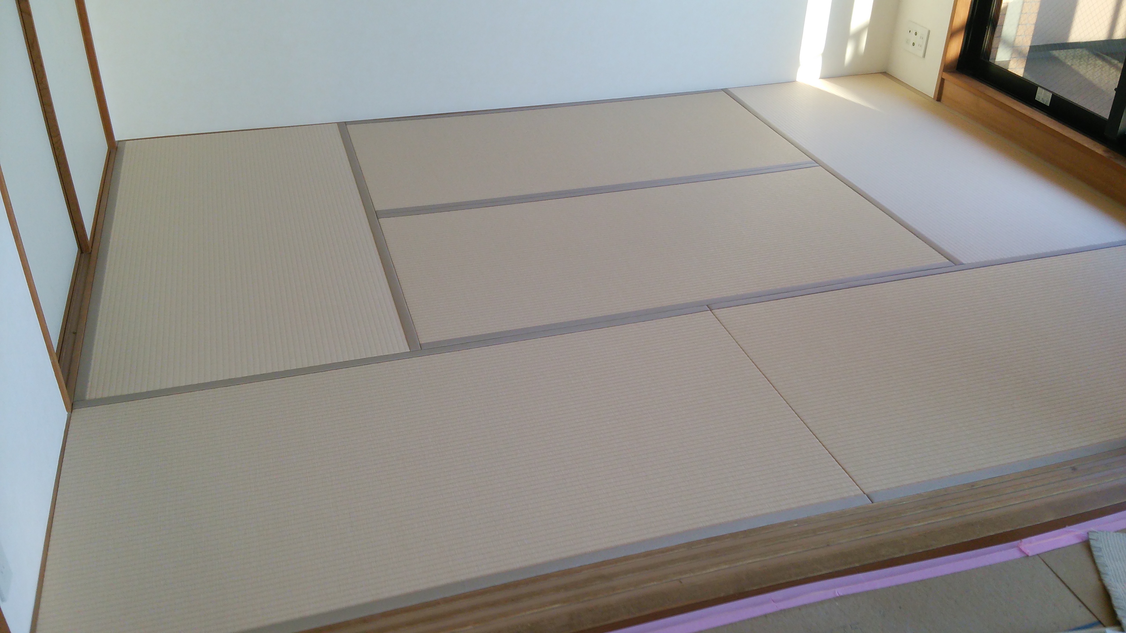ダイケン和紙表「銀白15(白茶色)」と畳縁「ストリーム15(白茶色)」を使用して、縁付の新畳をリフォームのお宅に納品致しました。