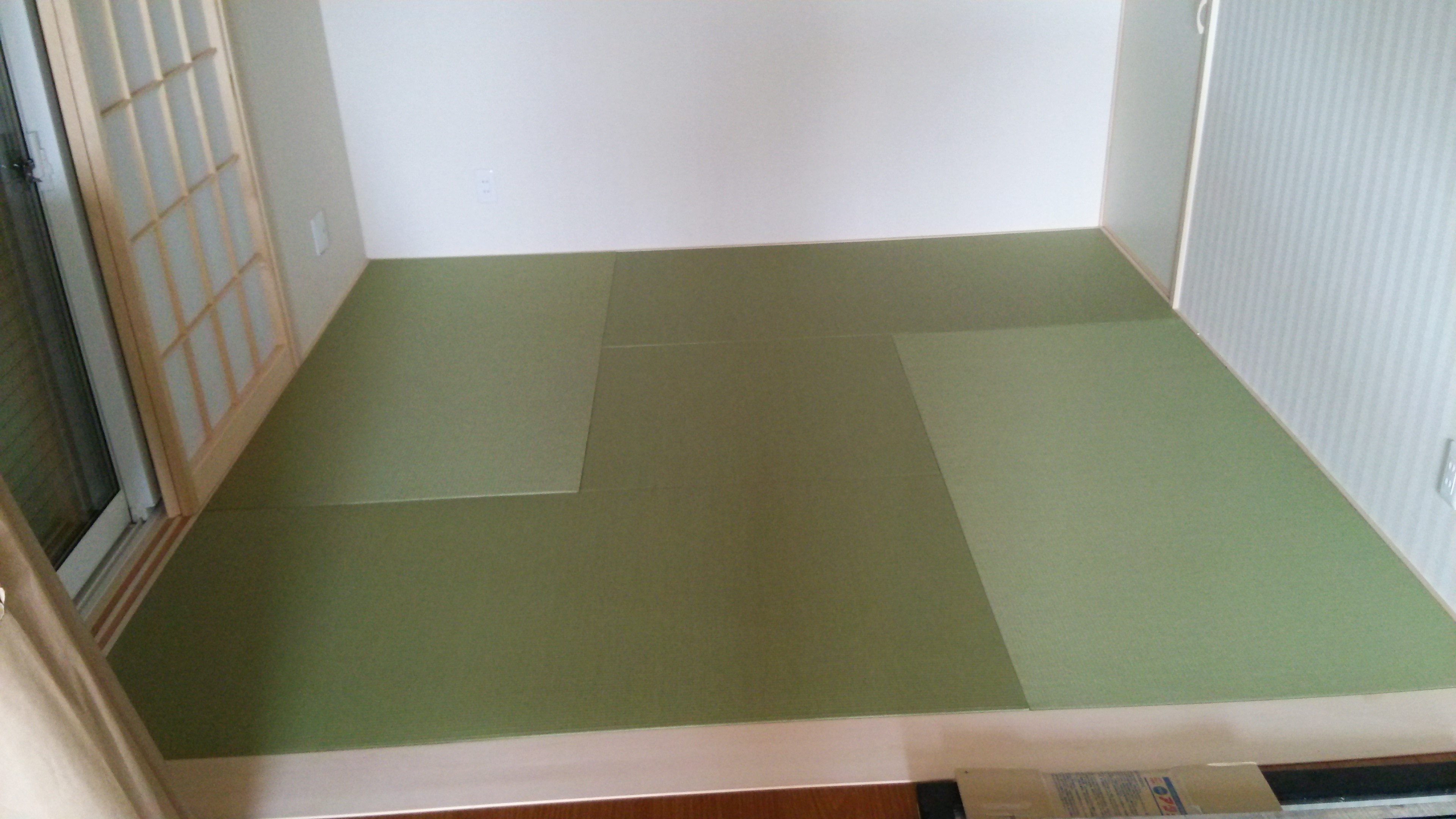 ダイケン和紙表「清流(銀白色)」を使用して、4.5帖間に一帖物の縁無畳(琉球畳)4帖と半畳の縁無畳(琉球畳)1枚を納めさせて頂きました。