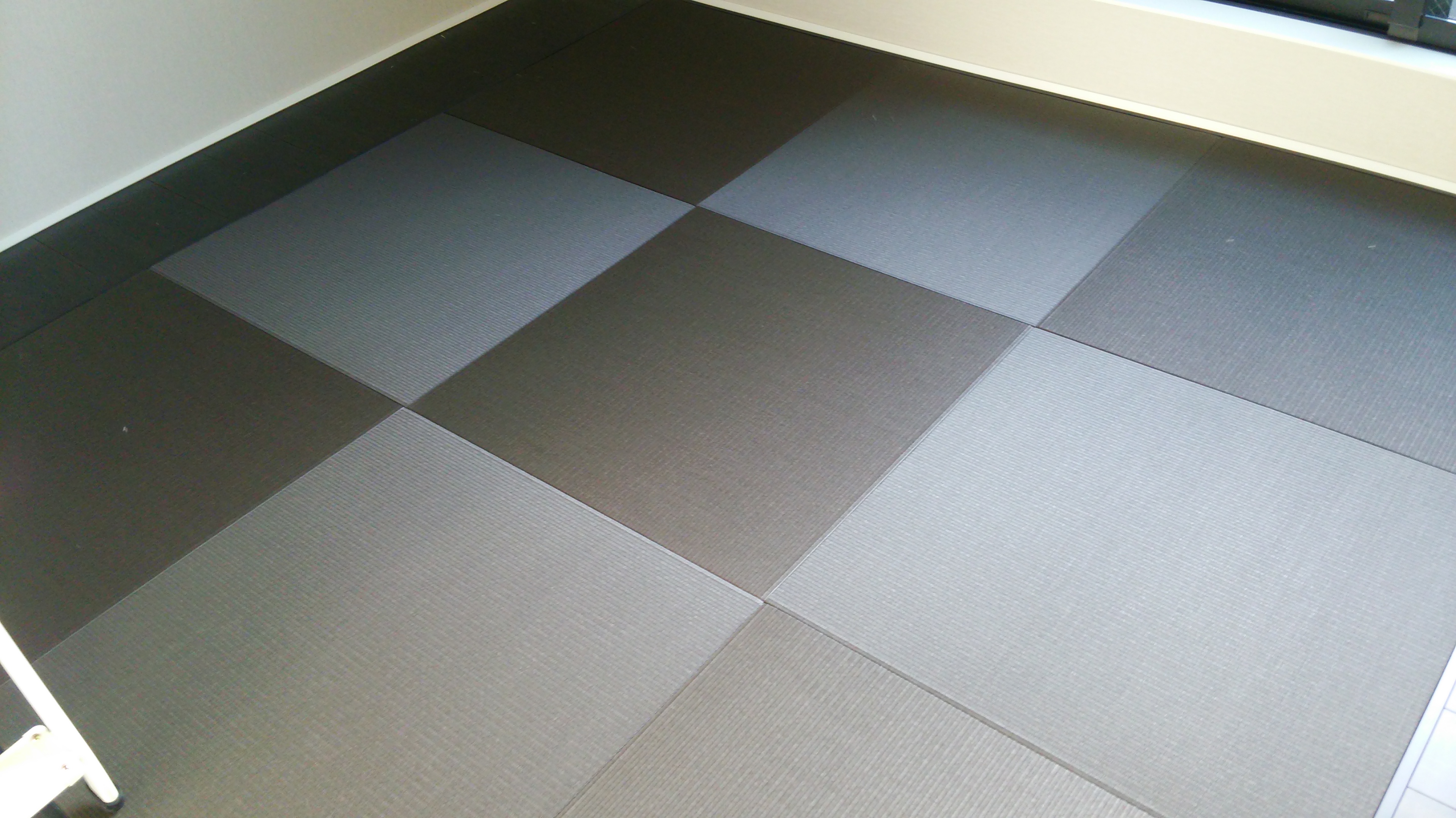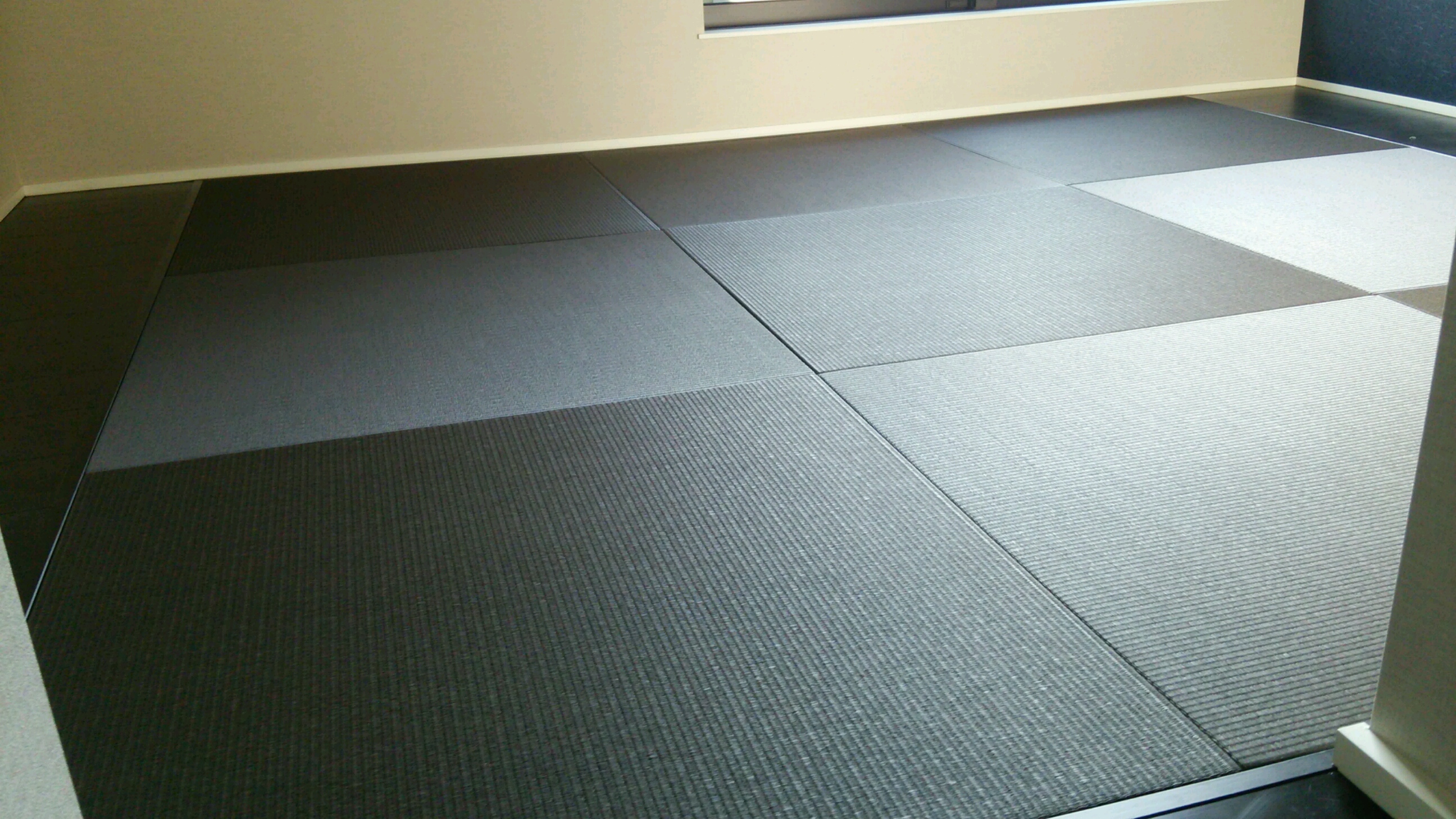 2016/02/20 ダイケン和紙表「清流12(栗色)」を使用して、薄畳(13ミリ)の縁無畳(琉球畳)、半畳9枚納品してきました。 縁無畳(琉球畳)にすると、お部屋がスッキリ広く感じますが、清流12(栗色)や清流09(墨染色)を使用すると、広さより締まって格好良いお部屋になります。 ドアやクローゼット、家具の色調に合わせて、ダーク系のシックな縁無畳(琉球畳)もいかがですか? 私も自宅の畳コーナーには、清流12(栗色)の縁無畳(琉球畳)を敷いています。