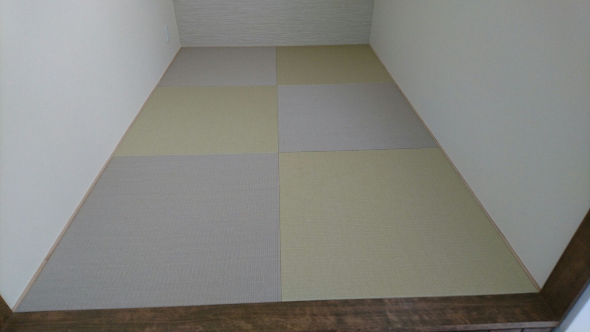 ダイケン和紙表「清流14(灰桜色)&16(若草色)」を使用して、縁無畳(琉球畳)半畳3枚づつ計6枚納品致しました。