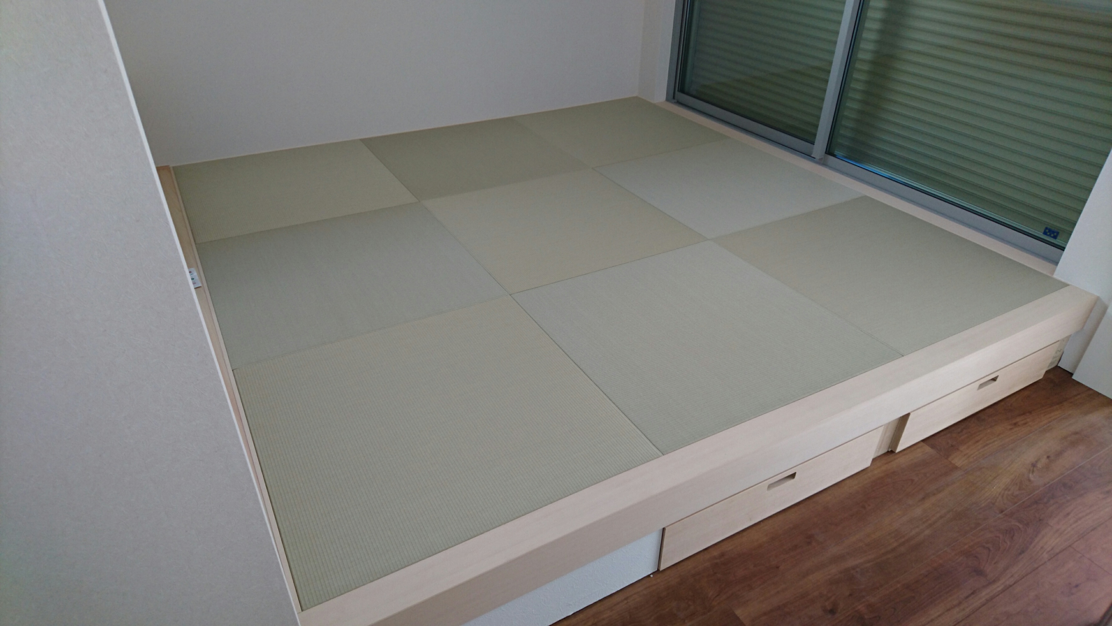 セキスイ「美草目積リーフグリーン」を使用して、薄畳(15ミリ)の縁無畳(琉球畳)半畳9枚を納品致しました。