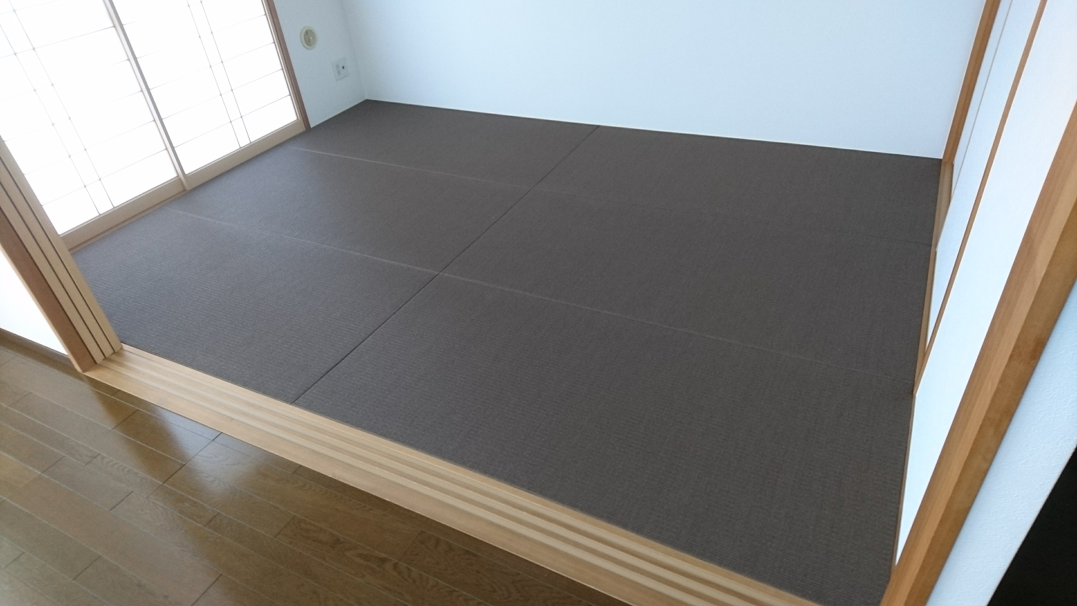 リビングのフローリングからの合わせで、「一色にしたい」とのお客様のご要望でしたので、この様な敷き方をご提案致しました。