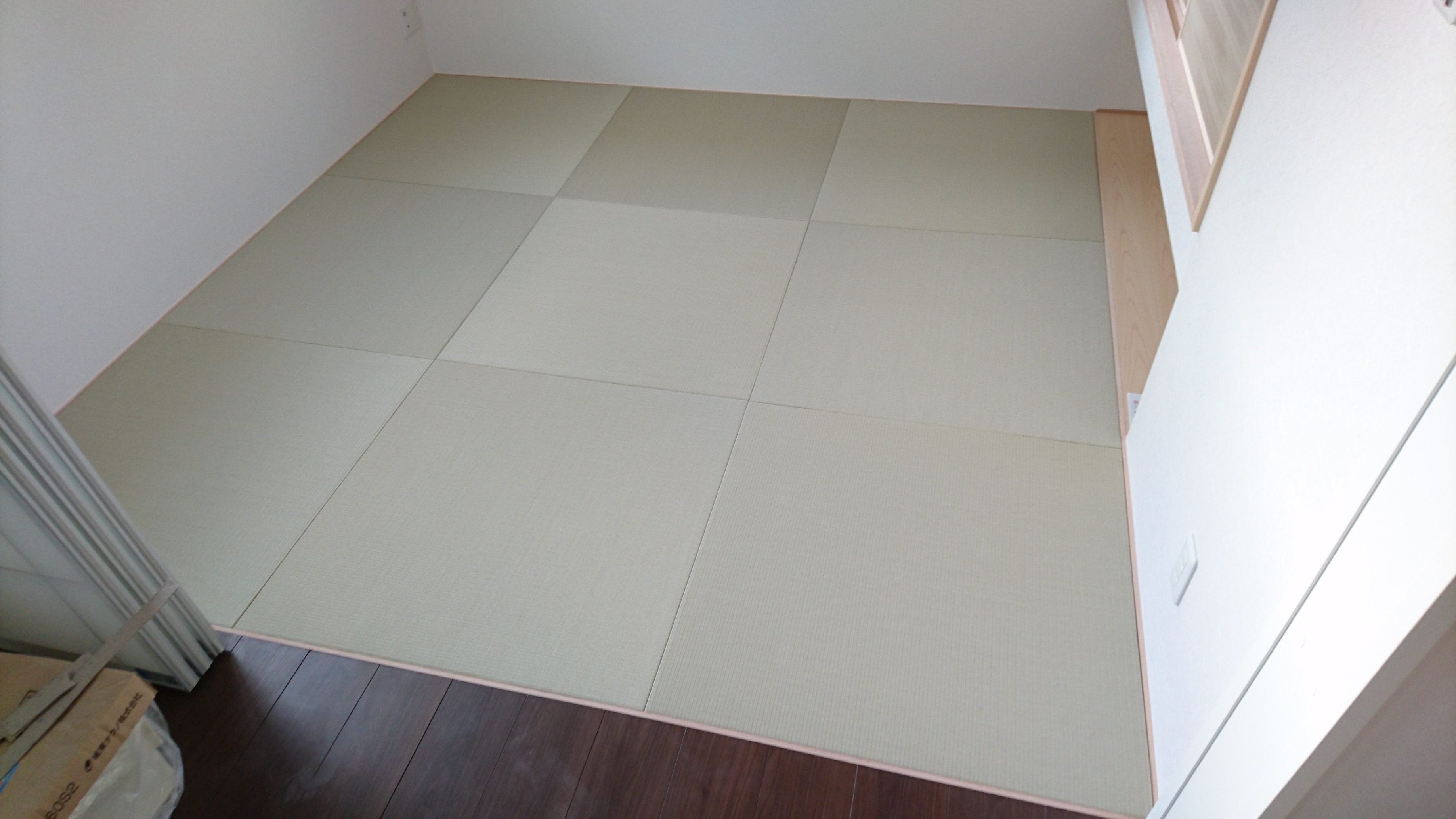 セキスイ「美草目積リーフグリーン」を使用して、縁無畳(琉球畳)半畳9枚を市松敷きで納品致しました。