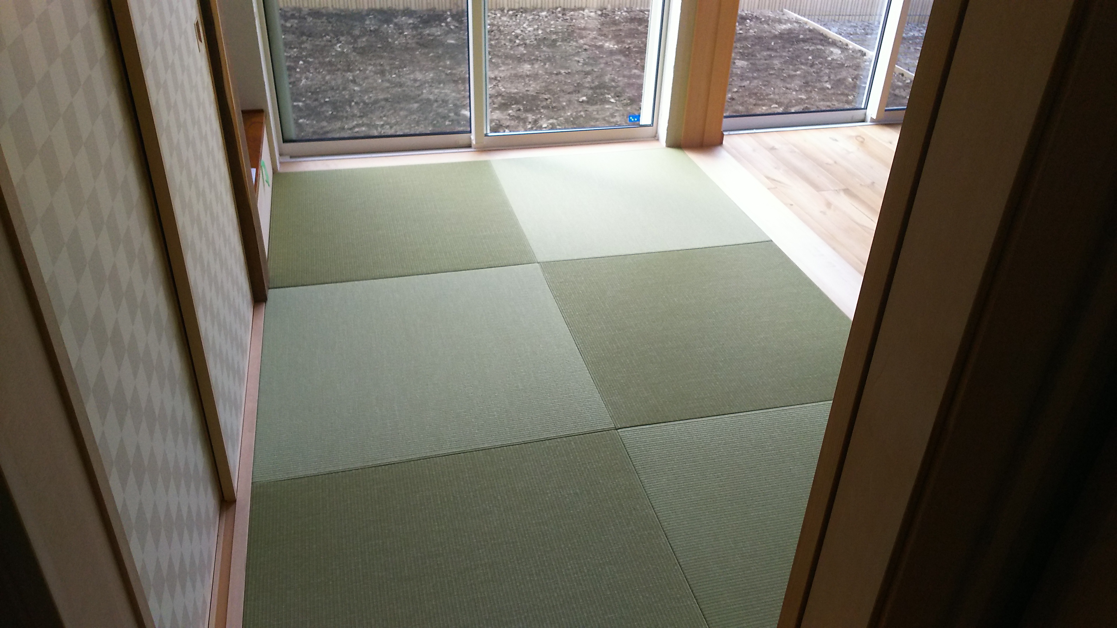 東京都府中市の現場で、窓からの光の当たり方で、畳の向きの違いによる濃淡がキレイに出ています。