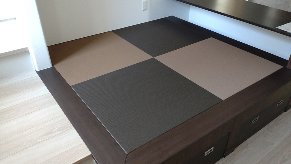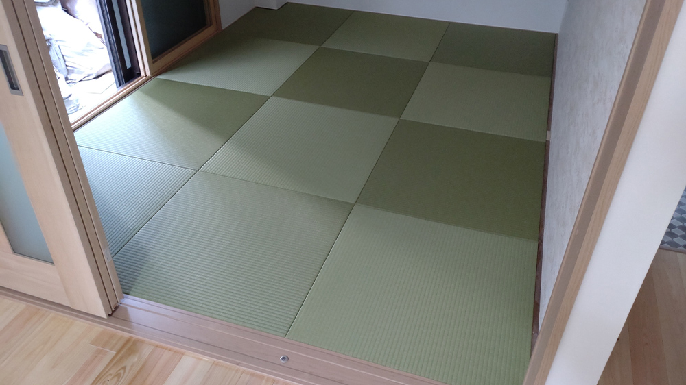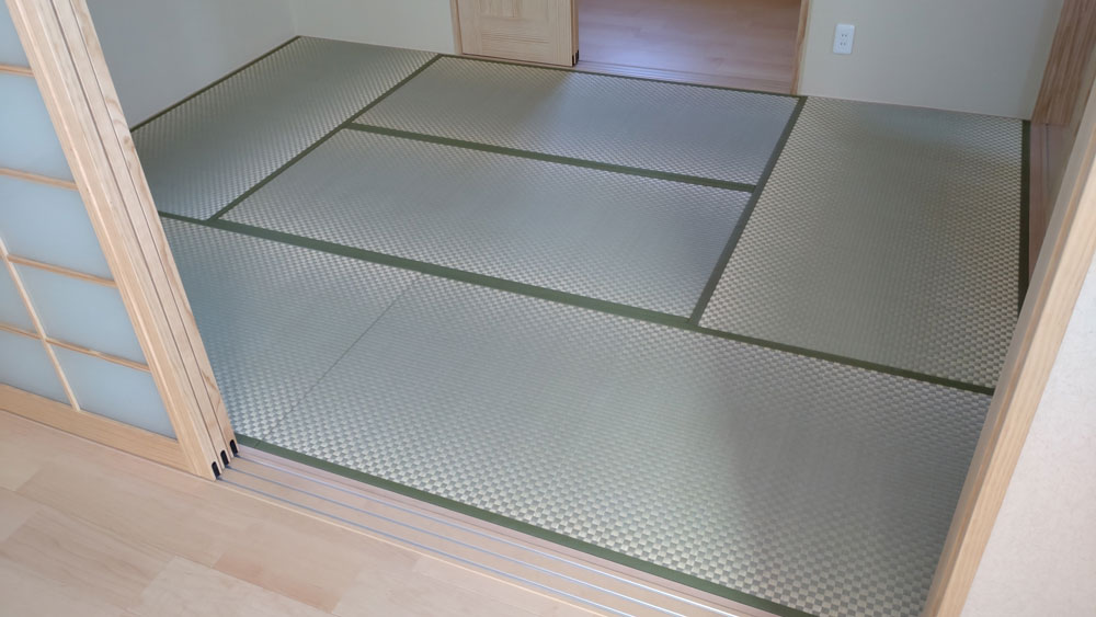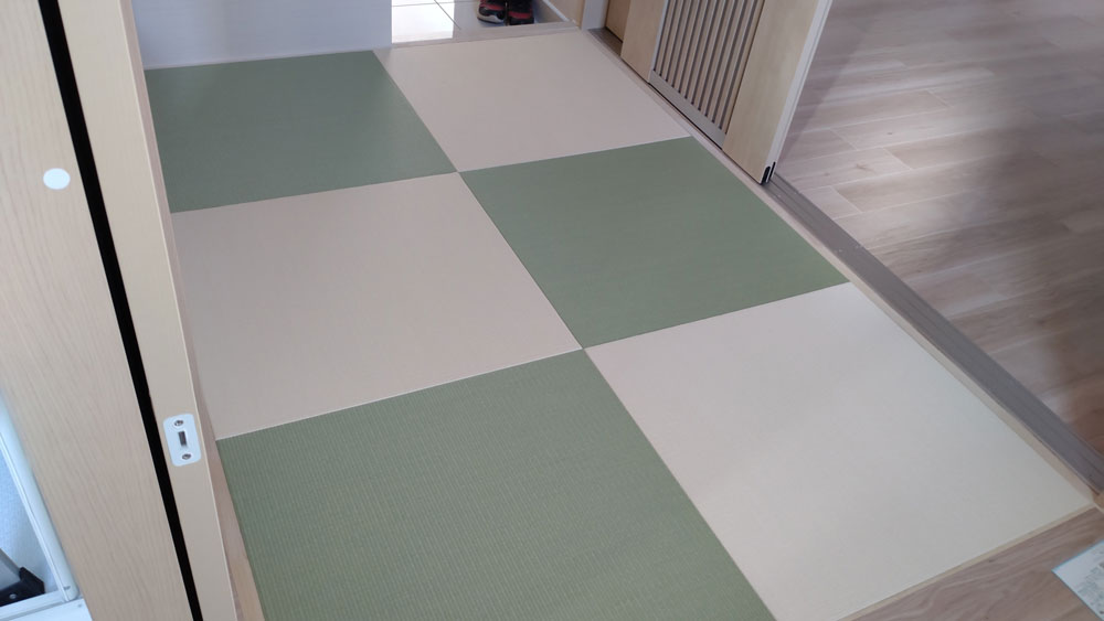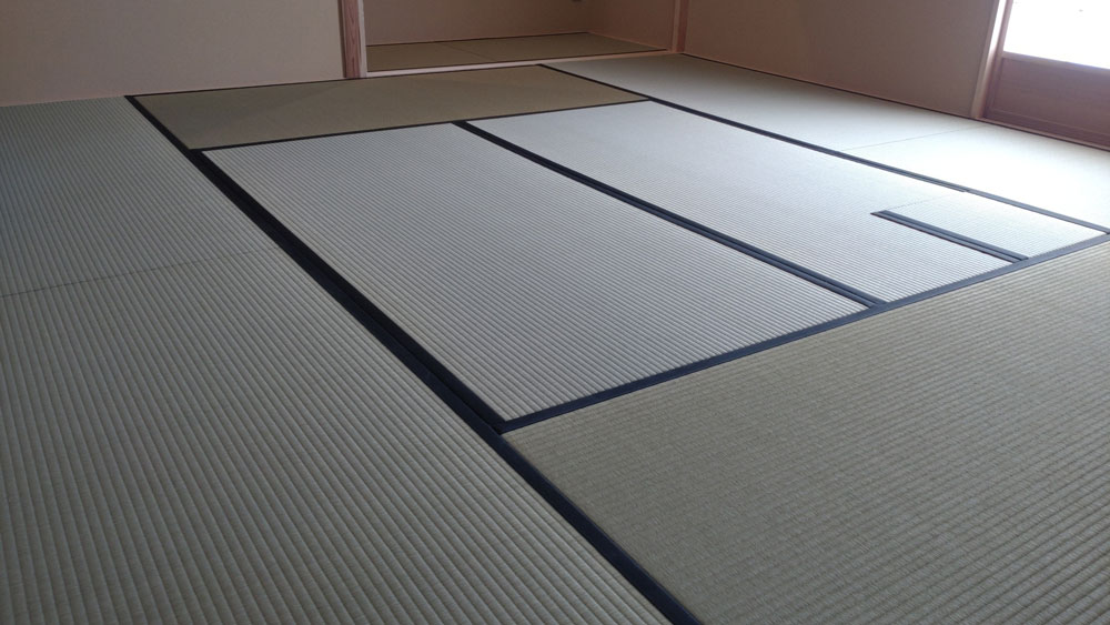 ダイケン和紙表「清流カクテルフィット21」を使用して、琉球畳(縁無畳)半畳9枚を市松敷きで納品いたしました。 […]